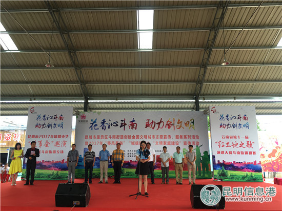 昆明信息港讯 记者杨炎 6月16日,昆明市呈贡区斗南街道创建全国文明城市志愿宣传、服务系列活动暨2017年“移风易俗”“诚信建设”“文明家庭建设”宣传活动在斗南盆花苗木市场举行。