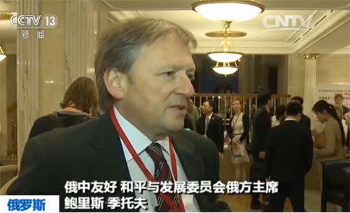 俄中友好、和平与发展委员会俄方主席 鲍里斯·季托夫说,正在进行的俄中高层会晤再一次证明,今天我们两国的关系发展迅速、成果不断。两国国家间、政府间的关系发展迅速,两国人民、民间团体间的交往更是频繁。