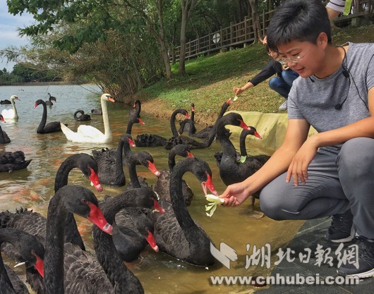 南昌是一座水城,赣江穿城,湖泊散布,水域面积占到了全市国土面积的29.8%。4日中午,媒体记者们在南昌高新区的艾溪湖湿地公园看到,三五成群的天鹅在园内湖中起舞,游人们拿着食物与天鹅亲密接触,人与动物和谐相处。