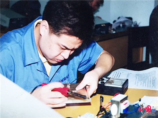 刘源从小就看着父亲摆弄各种电子元器件,渐渐对电器维修产生了兴趣。15岁左右,就正式“拜”父亲为师,系统学习电器维修,从最基础的认识电阻、电容、晶体三级管学起。中专选择了电子电器专业。16岁时,他子承父业进入长安厂,成为一名维修工人。