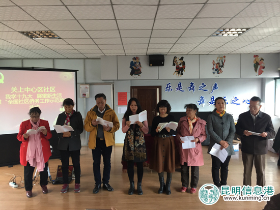 昆明信息港讯 记者龙泉积 12月1日,官渡区关上中心区社区开展了以“我学十九大,展望新生活,走进全国社区侨务工作示范单位”为主题的学习贯彻党的十九大精神活动。据介绍,通过此次活动,关上中心区社区将进一步深入学习十九大报告,让会议精神入脑入心入情,让辖区内的归侨侨眷转变思想观念,迎接新时代、开启新征程,为建设美好家园和幸福官渡作出新贡献。