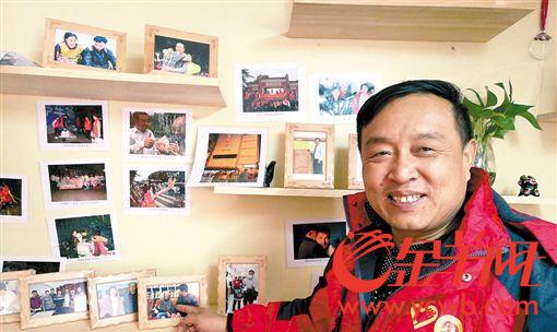 尚丙辉指着工作室里的照片介绍,每增加一张照片,就意味着又有一个流浪者回家了。 记者朱清海/摄