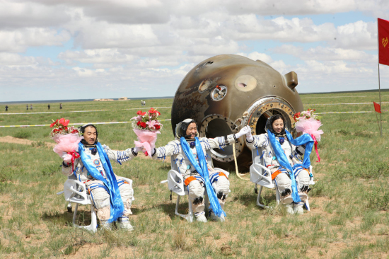 2013年06月26日 聂海胜 张晓光 王亚平 在四子王旗着陆场返回出舱 摄影:徐部