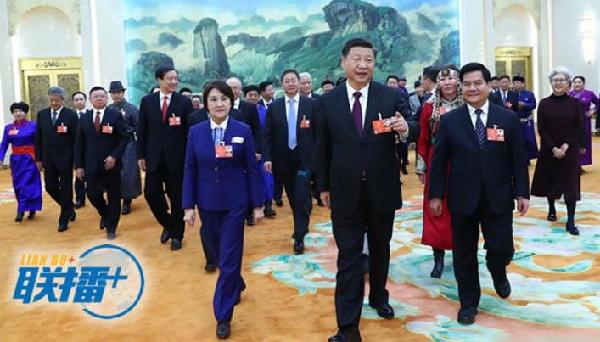 中共中央总书记、国家主席、中央军委主席习近平5日下午在参加他所在的十三届全国人大一次会议内蒙古代表团审议时强调,锐意创新、埋头苦干,守望相助、团结奋斗,扎实推动经济高质量发展,扎实推进脱贫攻坚,扎实推进民族团结和边疆稳固,把祖国北部边疆这道风景线打造得更加亮丽。