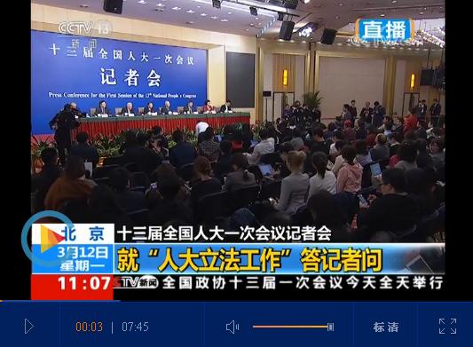 十三届全国人大一次会议新闻中心3月12日(星期一)10时在梅地亚中心多功能厅举行记者会, 邀请十二届全国人大内司委副主任委员王胜明、财经委副主任委员乌日图、教科文卫委副主任委员吴恒、环资委委员吕彩霞,全国人大常委会法工委副主任王超英、 副主任许安标就“人大立法工作”相关问题回答中外记者提问。