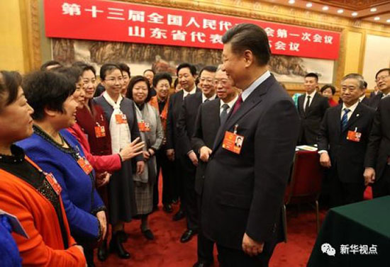 3月8日,习近平参加山东代表团审议(姚大伟/摄)