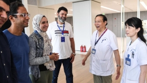 Doctor Tao Yuwen talks about the detail of an operation with foreign medical workers of a medical seminar at the digestive endoscopy center of Jiangsu Province Hospital in Nanjing, capital of east China's Jiangsu Province, Aug. 1, 2023.