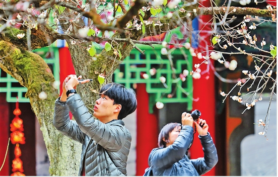 [InKunming--Kunming] Two wintersweet trees, which are more than 400 years old, bloom recently, announced by Kunming Heilongtan Park.