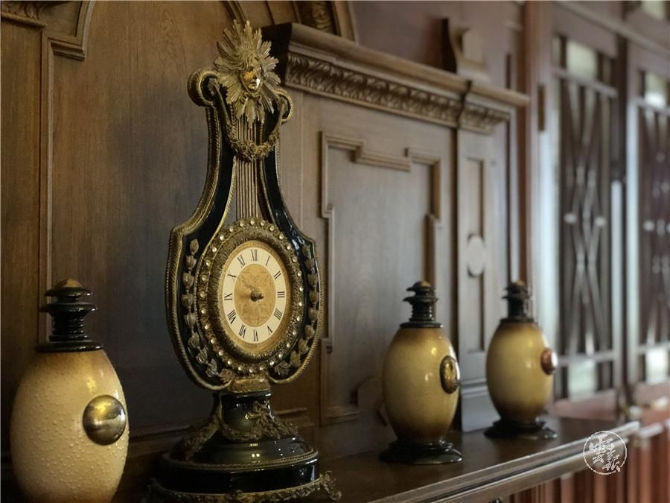 Luhan Mansion has two floors. The first floor is meeting room and living room, while the second is bedrooms, study and office rooms. It is roofed with red tiles and the walls are painted in yellow. Stained glass windows and fireplaces inside present a romantic and elegant atmosphere.