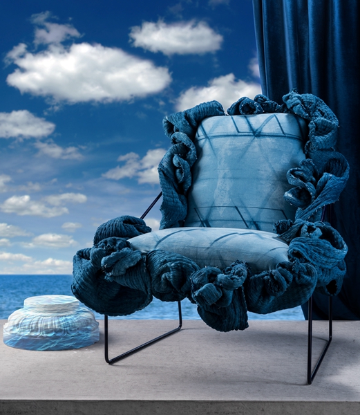 A chair she designed and made from tie-dyed cloth.[Photo provided to China Daily]
