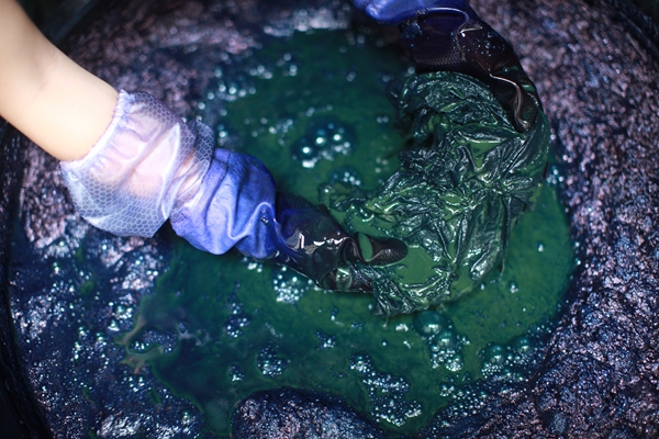 After being washed with clean water, the knots would be put into a vat in which crushed Radix Isatidis roots, a Chinese medicinal herb, served as the dyeing agent.