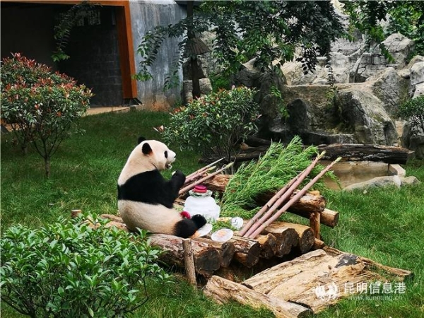 On July 26, nearly 50 tourists gathered around a special cake at the Panda House of Yunnan Wildlife Park , singing birthday songs in unison to celebrate the birth of panda Mao Zhu.