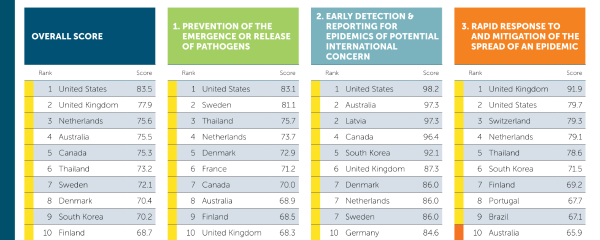 Screenshot of the 2019 Global Health Security Index compiled by Johns Hopkins Center for Health Security