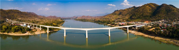Photo taken on Feb. 5, 2021 shows the China-Laos Railway's Luang Prabang bridge across the Mekong River in northern Laos. The world was a very different place five years ago when work began on the China-Laos railway. Much has changed since then, in almost every walk of life. But five years on, with completion of the railroad just weeks away, the natural environment along the route remains as verdant and lush as it was before the earthmovers arrived. (Photo by Pan Longzhu/Xinhua)