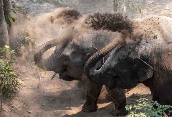 Wild Asian elephants bathe in dust in Wild Elephant Valley in Xishuangbanna Dai autonomous prefecture, Yunnan province, on March 15. CHEN XINBO/XINHUA