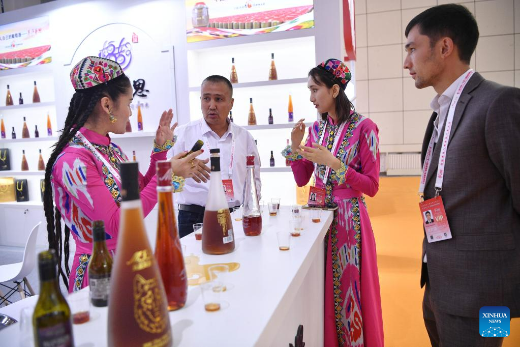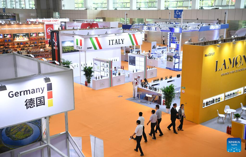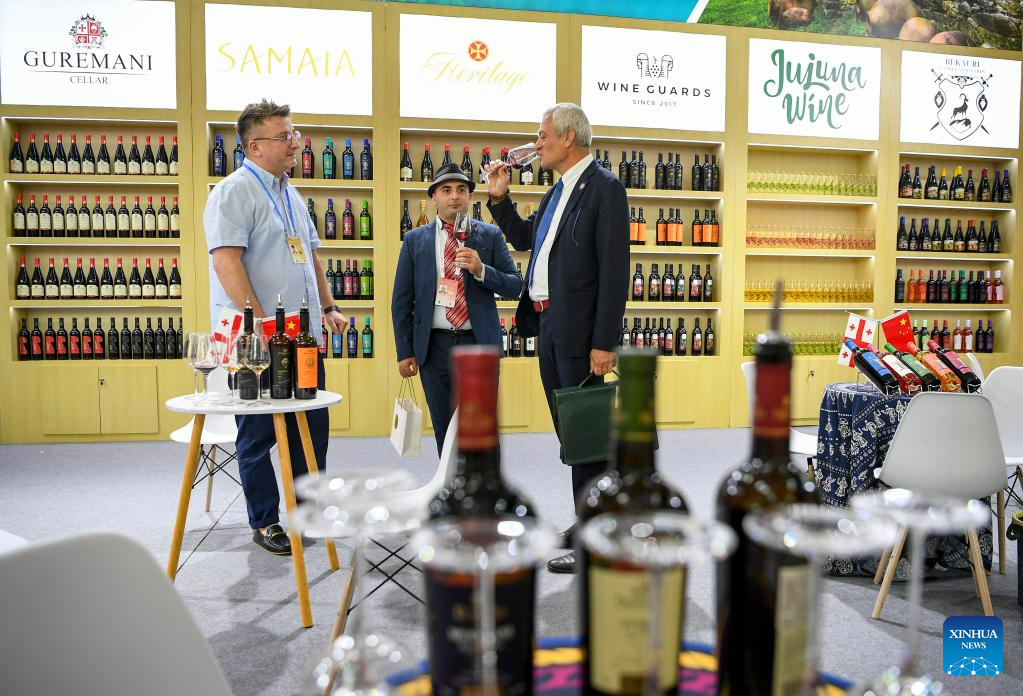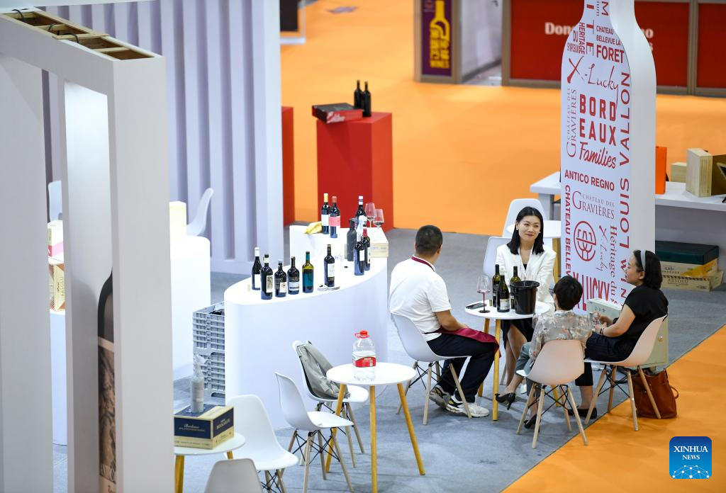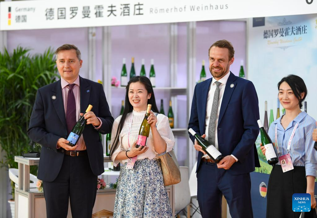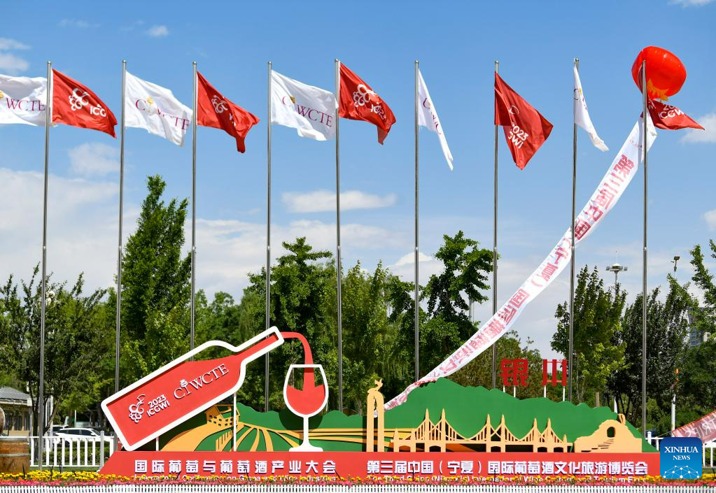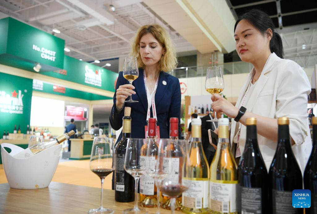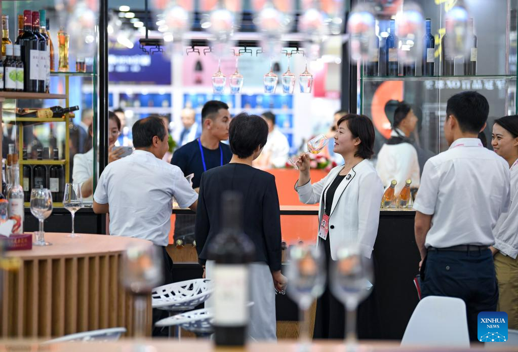 People visit a wine-themed international conference and an expo in Yinchuan, northwest China's Ningxia Hui Autonomous Region, June 9, 2023.
