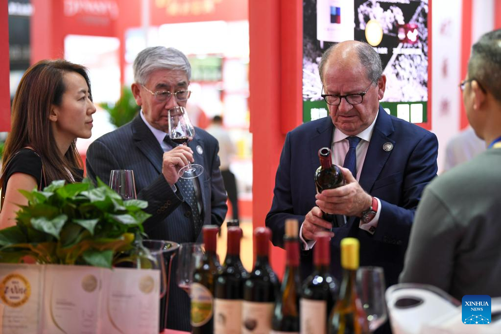 Themed "Nature, Innovation, Culture and Ecology," the event brings together experts and enterprises in the wine-making industry at home and abroad, and representatives from over 30 countries and four international organizations. (Xinhua/Feng Kaihua)