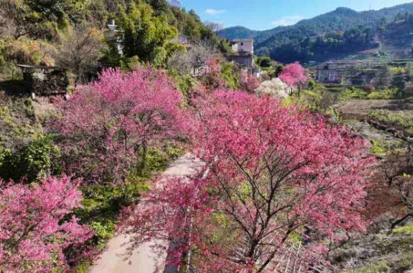 Located in Xijian, Doupo Village, Xizhu Sub-district, Wuhua District, and just a 30-minute drive from downtown Kunming, the village offers an enchanting winter scene. The blooming cherry blossoms not only delight local residents but also attract visitors eager to enjoy the "exclusive romance" of winter through flower viewing and photography.