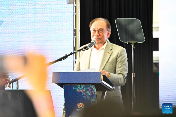 Malaysia's Prime Minister Anwar Ibrahim speaks at the launch of the Visit Malaysia 2026 Campaign in Kuala Lumpur, Malaysia, Jan. 6, 2025. All government ministries have been directed to improve their performance in boosting the country's tourism, investment and economic matters, Prime Minister Anwar Ibrahim said on Monday. (Xinhua/Cheng Yiheng)