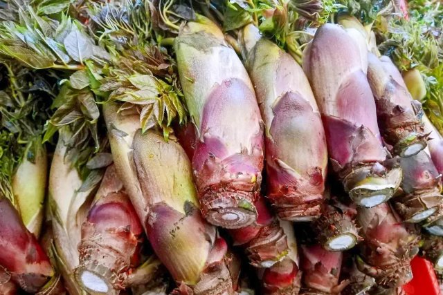When spring rain whispers to the awakening earth, the buds of ferns spread their bodies in the volcanic soil. The shoots of big ferns are like braids of girls, while the water ferns are like emerald tassels. After blanching, they are stir-fried with pickled vegetables, providing a tender and smooth texture with a hint of astringency. What is even more delightful is the dried fern, which will immediately evoke the memory of the entire spring when it is added to the pickled pork ribs stewed in winter.