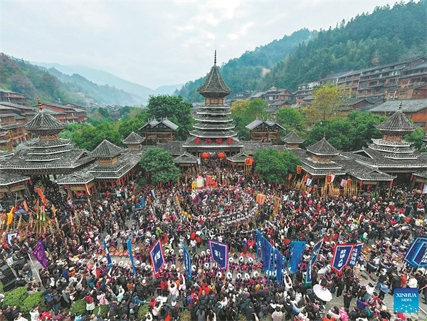 To the rhythm of lusheng woodwind pipes and the scent of sticky rice cakes, a village in southwest China's Guizhou province celebrated its annual Dong Ethnic New Year Festival over the weekend — an event that has become a gateway for global visitors.