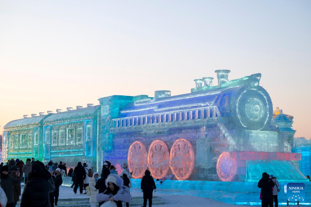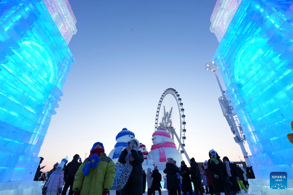 People visit the Harbin Ice-Snow World in Harbin, northeast China's Heilongjiang Province, Jan. 5, 2026. The 42nd Harbin International Ice and Snow Festival kicked off at the Harbin Ice-Snow World here on Monday. (Xinhua/Wang Jianwei)