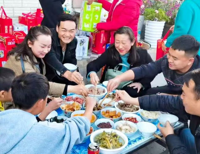 The liveliness reaches far beyond the dining table, flowing through the courtyard with warmth and affection. Men lend a hand with the work, women tend the stove, and children dart about in peals of laughter. There is no formality or distance here—but rather steaming dishes passed from hand to hand, and sincere smiles all around.