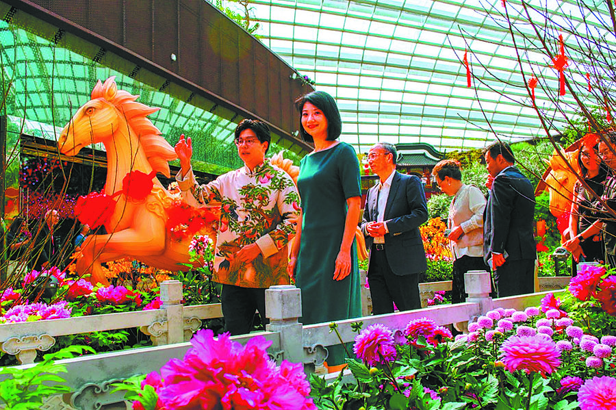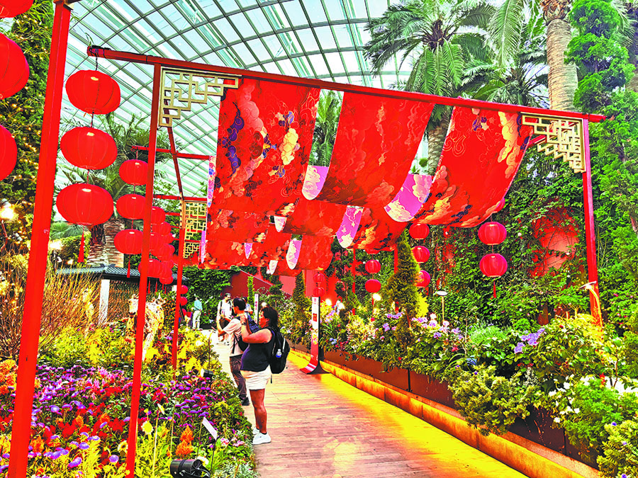 One signature Chinese New Year floral display in Singapore at the Gardens by the Bay has been open since mid-January and will last till March 1. [Photo provided to China Daily]