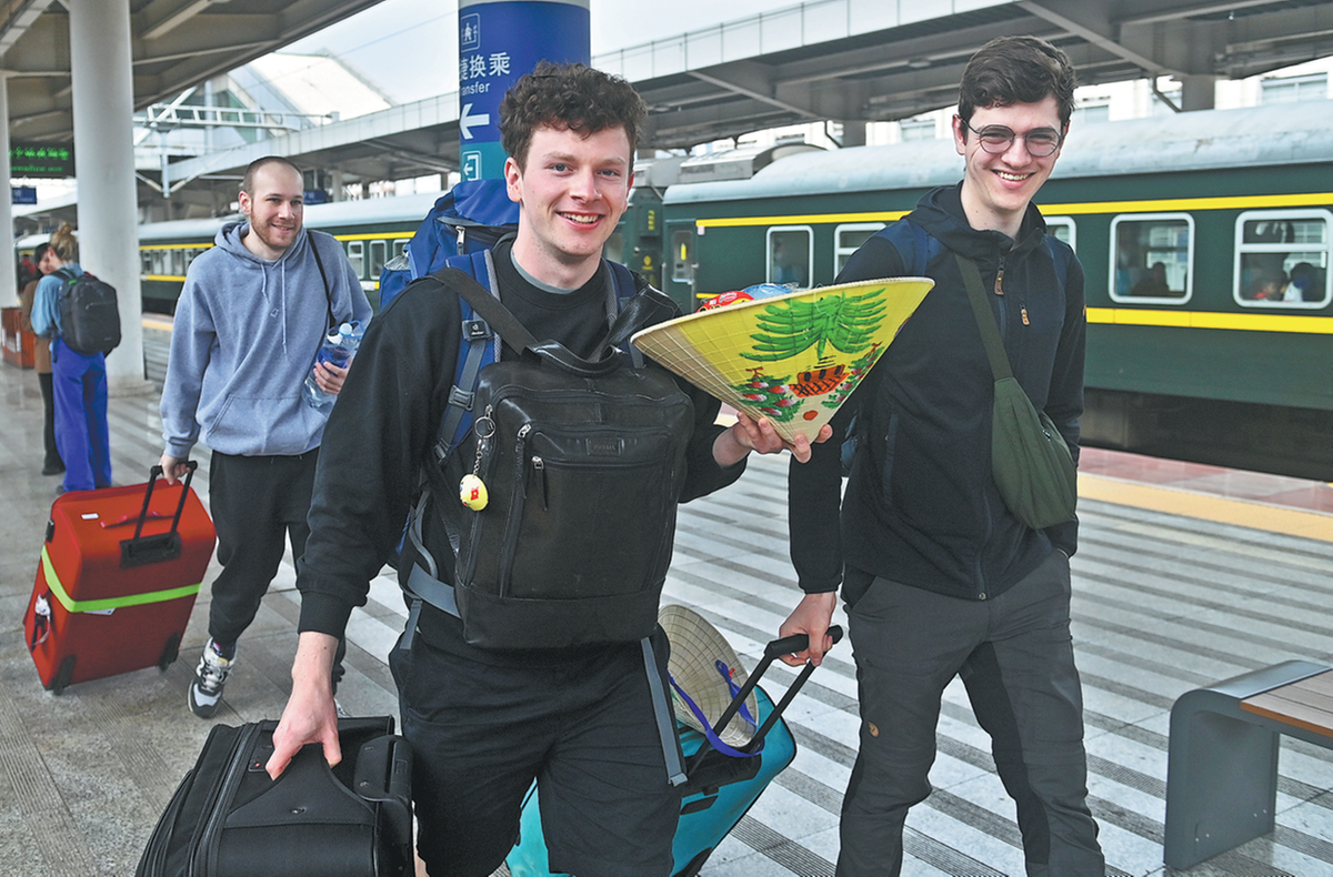 Swiss travelers on the China-Vietnam international passenger train depart from Hanoi, Vietnam, to Nanning, Guangxi Zhuang autonomous region, on Feb 10. XINHUA