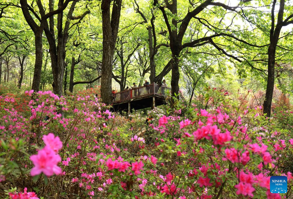 People enjoy flowers at Heilongtan Park in Kunming, southwest China's Yunnan Province, March 21, 2026. People step outdoors and embrace nature as spring unfolds across China. (Photo by Zheng Yi/Xinhua)