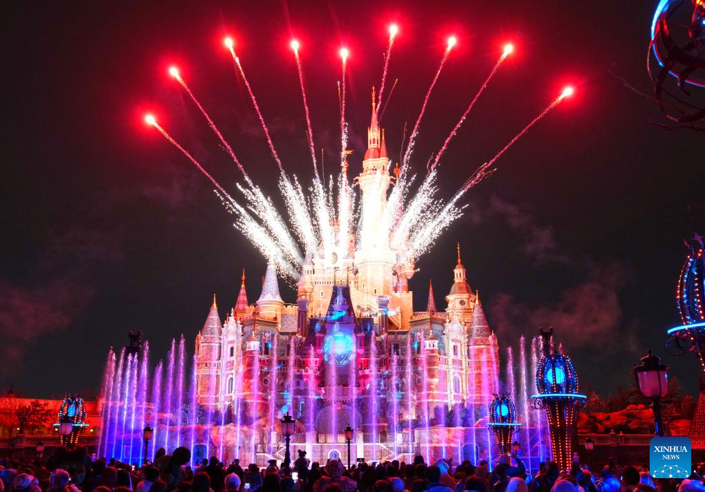 A firework show is seen at the Shanghai Disneyland in Shanghai, east China, March 20, 2026. A series of celebrations designed for the 10th anniversary of the opening of Shanghai Disneyland started here on Friday. The Shanghai Disneyland opened here on June 16, 2016. (Xinhua/Liu Ying)