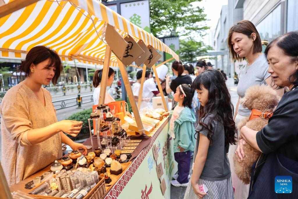 People visit a market featuring intangible cultural heritage activities in Haikou, south China's Hainan Province, March 21, 2026. The market was held here from March 20 to 22, showcasing the charm of intangible cultural heritage. (Xinhua/Zhang Liyun)
