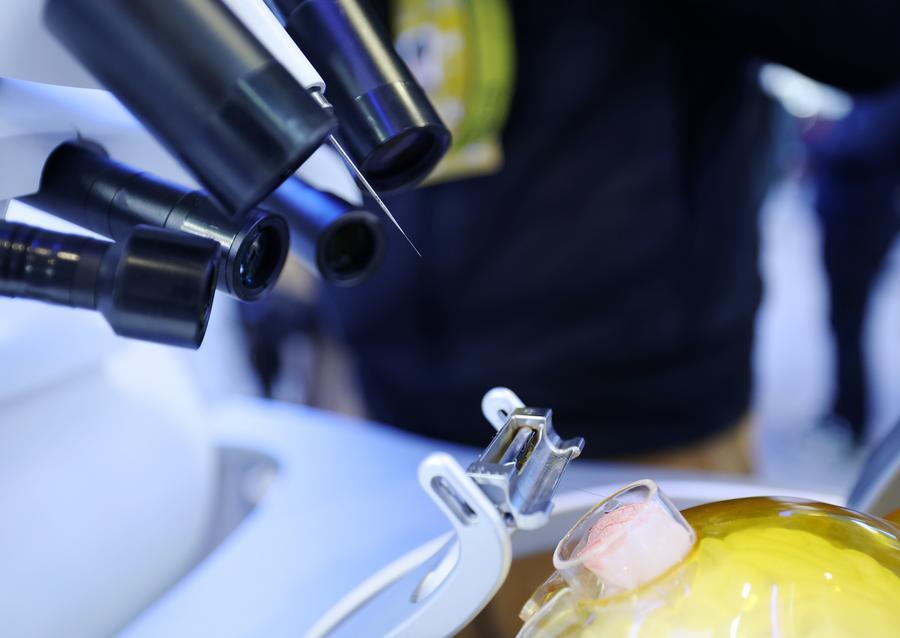 This photo taken on March 24, 2026 shows a high-throughput invasive brain-computer interface system at the Zhongguancun Exhibition Center in Beijing, capital of China. (Xinhua/Zhang Chenlin)
