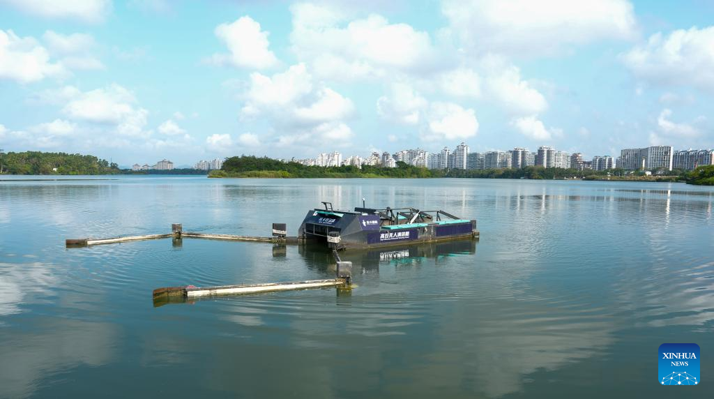 An unmanned smart water sanitation vessel works on the Wanquan River in Qionghai City, south China's Hainan Province, March 25, 2026. Smart sanitation facilities are in service during the Boao Forum for Asia (BFA) Annual Conference 2026, becoming a highlight of urban services with accurate dispatch, rapid disposal and high standards. (Xinhua/Yang Guanyu)