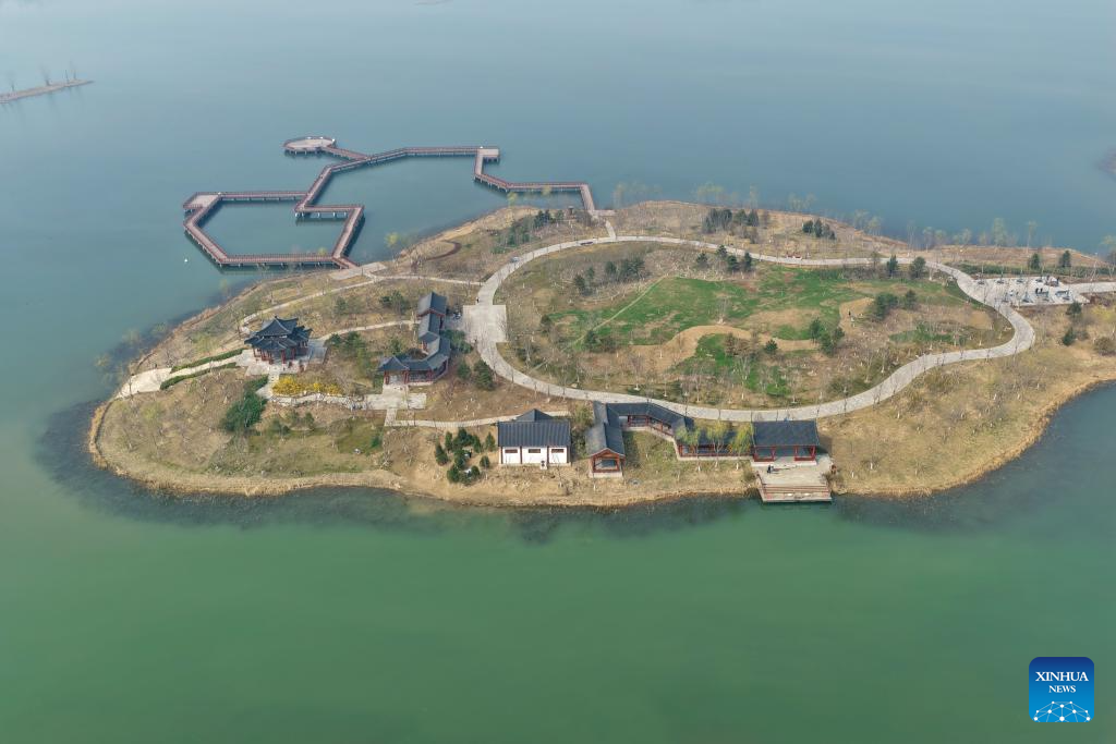 An aerial drone photo taken on March 26, 2026 shows the Jinhu Park in Rongdong area in the Xiong'an New Area in north China's Hebei Province. (Xinhua/Mu Yu)