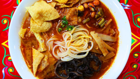 Luosifen, a noodle dish known for its pungent smell, is a signature street food in Liuzhou City. It features rice vermicelli soaked in a spicy broth nicely flavored by river snails and topped with ingredients such as pickled bamboo shoots, string beans, peanut...