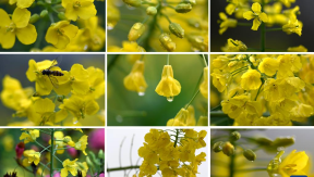 This combo photo taken on March 24, 2026 shows blooming rapeseed flowers in Wuyuan County, east China's Jiangxi Province.