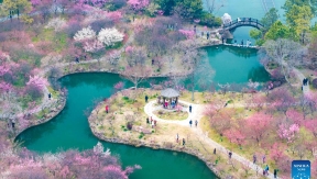 Tourists enjoy flowers at Qingxiu Mountain scenic area in S China's Nanning