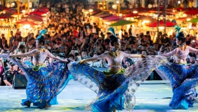 This photo shows a view of the Starlight Night Market in Jinghong City of Xishuangbanna Dai Autonomous Prefecture, southwest China's Yunnan Province.