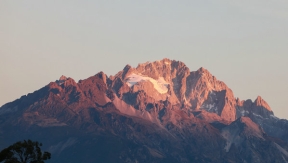 sunlight shining on the Yulong Snow Mountain in Lijiang city