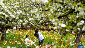 With the arrival of warmer weather, the Honghe Hani Rice Terraces in Yuanyang county, Yunnan province, offer a breathtaking view, where water-filled terraces seamlessly merge with vibrant spring blossoms.