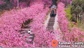Spring at its finest! Yunnan's cherry blossoms are in full bloom, with sightseeing boats and trains winding through hills painted pink.