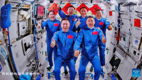 The three astronauts aboard China's Shenzhou-20 spaceship have entered the country's space station and met with another astronaut trio in the early hours of Friday, starting a new round of in-orbit crew handover.