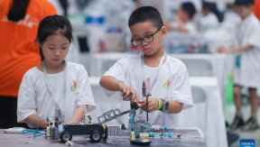 Contestants are pictured in an innovative electronics design competition during the finals of the China Youth Electronic & Information Literacy Contest in Tongxiang City, east China's Zhejiang Province, Aug. 20, 2025. The finals of the contest kicked off here ...