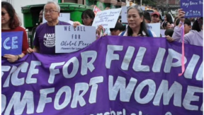 Around 100 Filipinos marched through downtown Manila on Sunday to commemorate victims of wartime atrocities and call for peace amid rising tensions in the Middle East.