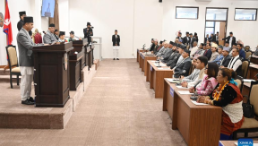 Lawmakers of the newly elected House of Representatives of Nepal take the oath of office and secrecy at a ceremony at the main administrative complex Singha Durbar in Kathmandu, Nepal, March 26, 2026.