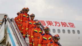 A total of 118 members of the China International Search and Rescue Team (CISAR) arrived in Nay Pyi Taw, Myanmar, on Sunday night.