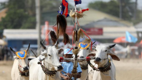Cambodian villagers on Monday held a traditional ox-cart racing here to celebrate the lunar New Year, which will be observed from April 14 to 16.