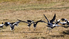 According to observation statistics, the first group of black-necked cranes have arrived at Xundian Black-necked Crane Reserve in Yunnan province for winter on November 9.