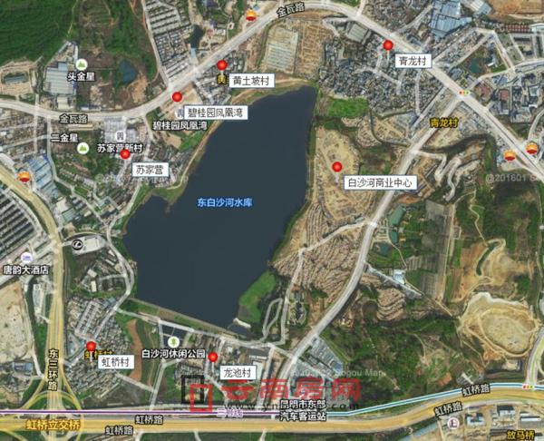 自云南城投提出开发构想至今,一年多时间过去了,白沙湖仍只是个概念规划,但这并不妨碍白沙河水库周边逐渐成为昆明房地产开发热点,各路房企纷纷在水库沿岸抢滩圈地。除捷足先登,在白沙河水库开发第一个湖岸项目凤凰湾的云南碧桂园,利用先行之利,拿下白沙河东北岸青龙村一级开发土地权之外,另一个大赢家是刚刚入昆不久的大华集团,其从云南城投手上接过虹桥村、龙池村城改项目,总规模达683亩。占有地利的昆明农投在白沙河东岸有一个100多亩的商业项目——白沙河商业中心。